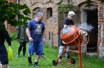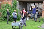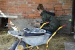 Nach der Stärkung ging es weiter. Schutt, Ziegel und Schrott mussten verlagert werden. Die Arme wurden hierbei immer länger. Manch einer konnte seine Kraft voll darbieten. Zement wurde angerührt und so begannen auch die ersten Verputzarbeiten. Manch einer hatte dabei sichtlich Spass und nach einer kurzen Einführung gelang es den Zement fachmännisch an die Wand zu befördern.
