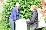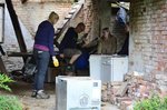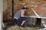 Einige der Helfer bewaffneten sich mit Vorschlaghammern und begannen den alten Putz an den Gebäuden abzuhauen, der Hasenauslauf wurde von Brennesseln befreit und der in schieflage geratene Hasenzaun begradigt.