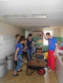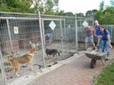 Auch brachten wir wieder eine große Menge an Spenden zu Jola, einer lieben Tierfreundin unweit desTierheims, die sich sehr fürsorglich um die Streunerkatzen kümmert. Nach unseren Besuchen auf den Höfen fuhren wir ins Tierheim Gorzow, wo uns Tierpfleger Jejek begrüßte. Es herrschte ein reges Treiben und einige Helfer waren vor Ort. Es wurden Näpfe ausgewaschen und der ein oder andere Hund wurde ausgeführt. Wir waren sehr überrascht und freuten uns über die die freiwilligen Helfer. Wir luden schnellen Schrittes unseren noch immer bis zur Hälfte voll beladenen Transporter aus und begannen mit den Fütterungsvorbereitungen. Wir hatten über 80 Dosen Hundefutter und viele viele Säcke Trockenfutter dabei, sodass 5 Schubkarren mit Futter gefüllt werden konnten, die auch nötig waren um all die hungrigen Bäuchlein zu füllen.