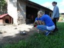 Den Großteil der Höfe kannte ich schon und doch war ich wieder unheimlich erschüttert über die Lebensverhältnisse unter denen die Tiere und auch Menschen dort ihr Dasein fristen müssen. Hunde und Kühe an kurzen Ketten, aufgeweichte Böden, Hunger und Durst, Einsamkeit. Gott sei Dank konnten Astrid, Andrea und ihr tolles Team schon in derVergangenheit dafür sorgen, dass alle diese Hunde eine Hütte haben, um sich vor der Witterung zu schützen. Wir fuhren also die Höfe an, schauten nach dem Rechten und fütterten die Hunde, Katzen und eine Ziege. Andrea kümmerte sich darum, dass die meisten der Tiere ein Flohmittel erhielten.