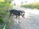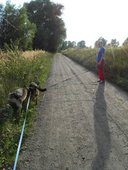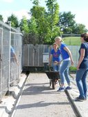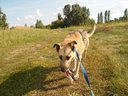Nun griffen wir uns die Leinen und gingen die ersten Runden mit den Hunden. Sie waren sehr stürmisch und freuten sich sehr über diese willkommene Abwechslung und den weichen Sand- und Wiesenboden, auf dem wir liefen. Am nahegelegenen See konnten sie planschen und sich abkühlen.