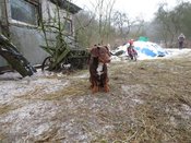 Etwas geknickt, ging es dann weiter zu den beiden Höfen, die wir einmal im Monat versorgen. Schon im Vorfeld wurde uns die Info zuteil, dass auf einem der Höfe, wo bereits durch uns und einen befreundeten Verein erfolgreich 3 Zwinger für die jetzt ehemaligen Kettenhunde gebaut wurden, wieder zwei Welpen dazu gekommen sind. Allein diese Info war schon sehr ärgerlich. Wir unterstützen den Hof ja nicht, damit sie sich immer wieder weitere Hunde anschaffen. Leider mussten wir aber feststellen, dass auf dem gesamten Hof nur noch ein Welpe zu sehen war. Von einem zweiten keine Spur... Wir befürchten das Schlimmste.