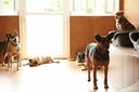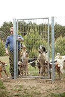 Am Pfingstmontag, 20.05.13 starteten wir dann auch schon wieder um 8:00 Uhr zu der ersten Hundestation für den Tag, nach „Copernika“. Julia konnte leider nicht mitkommen sondern machte sich auf den Weg zurück nach Hause Richtung Düsseldorf. Dafür begleitete Anne und mich die liebe Fotografin und Unterstützerin des THNW Stefanie. Sie hatte uns angeboten professionelle Fotos von diesem Tag zu machen worüber wir uns sehr freuen. In Copernika dieses Mal ohne uns zu verfahren angekommen, wurden wir herzlich von dem Stationsleiter der Pro Animale Station „Rendezvous mit Tieren“, Hasan Tatari, empfangen. Was wir dort sehen durften lässt sich nicht in Worten beschreiben. Pro Animale hat im letzten Jahr ein ca. 6 Hektar großes Bunkergelände erworben und in einen wahren Hundetraum für ihre geretteten Schützlinge aus Polen, Spanien, Russland, Türkei usw. umgebaut. Hier können die derzeit ca. 160 Hunde in großen unterteilten Waldarealen spielen, schwimmen und toben, leben tun sie in den typischen Pro Animale „Hundezimmern“ in Gruppen. Auch hier hatten wir Zeit uns mit den Hunden zu beschäftigen und zu kuscheln. Die meisten von ihnen sind sehr aufgeschlossen Menschen gegenüber aber es gab auch einige, die sich lieber zurückzogen und die haben wir auch in Ruhe gelassen. In dem einem Hundezimmer waren sogar alle Hunde sehr ängstlich und keiner von ihnen hat sich anfassen lassen. Wer weiß was sie erlebt haben! Ich bin mir nicht ganz sicher aber es könnten welche gewesen sein von denen, die vor ein paar Jahren aus Moskau gerettet wurden. Nachdem wir auch an diesem Tag mit einem leckeren vegetarischen Essen von den Pro Animale Mitarbeitern verwöhnt wurden haben wir uns frisch gestärkt an die Arbeit gemacht um dort die mitgebrachten Spenden für die Hunde auszuladen und sie übergeben. Sogar ein Trockner wurde uns von Denise L. für Pro Animale als Spende mitgegeben. Anschließend haben wir uns an die Fersen von „Lukasz“, dem Leiter der Hundestationen, geheftet und sind im wahrsten Sinne des Wortes mit dem Trapo hinter ihm hergerast zur nächsten Herberge. Ein Glück das Anne so eine gute und sichere Fahrerin ist, denn gerast ist wirklich nicht untertrieben aber ansonsten hätten wir den Anschluss verloren. Die Polen scheinen sehr rasante Autofahrer zu sein und nehmen wenig Rücksicht auf ihre „Anhängsel“. Kurzfristig ging uns sogar der Gedanke durch den Kopf ob er uns gar absichtlich abschütteln wollte. Aber wir haben der „Verfolgung“ standgehalten und sind dann schließlich heil bei der zweiten Hundeherberge „Kolebca Slonca“ (Sonnenaufgang) angekommen. Nachdem wir auch hier den Hunden in ihrem eigenen „Swimmingpool“ aus Stein beim Baden zugeschaut und mit den teilweise klatschnassen Fellnasen geschmust haben, sind wir dann die Heimreise angetreten und waren dann doch auch erst gegen 20:30 Uhr zuhause. Wir hatten zwei erlebnisreiche Tage mit allen Tieren und freuen uns, dass wir auch mal ein paar schöne Seiten vom Tierschutz sehen durften. Alle Tierherbergen von Pro Animale sind liebevoll für die Tiere gestaltet und ihren Bedürfnissen angepasst, hier dürfen sie ihre schlechte Vergangenheit vergessen.