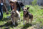 Erster Halt war der Autohändlerhof auf dem 5 Hunde ihr Dasein fristen. Den drei Fellnasen im Zwinger konnten unsere fleißigen Männer im Handumdrehen sogar den Zwinger vergrößern, während Lieven mit ihnen eine große Runde lief. Was muss das für ein Highlight sein, wenn man Tag für Tag nur durch rostige Gitterstäbe, die kleine traurige Welt an sich vorüber ziehen sieht.