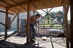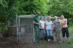 Nach vielen Schmuseeinheiten, Fellpflege, Reinigung des Zwingers sowie prallgefüllten Näpfchen fuhren wir vom Hof. Weiter ging es zu den beiden Kuhhöfen. Hier sollte heute Großes entstehen. Die beiden Hunde die sich nur aus der Ferne betrachten konnten führten wir zum zweiten mal zusammen, den sie kamen endlich von der kette. Das Bauteam unseres Partnervereins Tiere suchen Freunde e.V. bauten einen 40qm großen Zwinger für die beiden Mäuse. Die Hündin wurde am selben Tag noch kastriert und für 3 Tage in einer Pension zur Erholung untergebracht. Mittlerweile leben die beiden glücklicher und mit wesentlich mehr Lebensqualität in ihrem Zwinger. Dass das nicht der Idealzustand und absolut nicht artgerecht ist wissen ist uns allen klar, aber wir tasten uns langsam heran und versuchen nach und nach die Haltungsbedingungen zu verbessern.