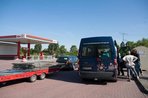 Wir fuhren, nach herzlichem Wiedersehen frohen Mutes in Richtung polnische Grenze. Kurz nach der Grenze hielten wir auf unserer altbewehrten Tankstelle um die Autos umzuladen und das meine Lieben, kann zu einem richtigen Projekt werden. Viele Hunde- und Katzenfuttersäcke sowie Kratzbaum, Leckerchen und Kleiderspenden wechselten den Fahrer und unser knacke voll beladener Trapo leerte sich flott. Ich bilde mir ein, ich hätte sogar einen kleinen Seufzer vernommen. Der arme kleine Porsche ;)
