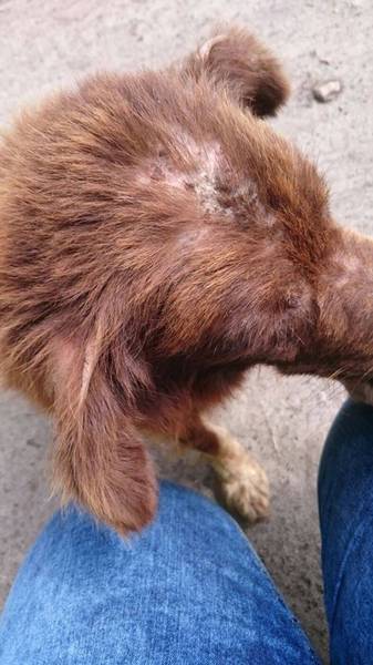 Einer der Hofhunde (der einzige der manchmal frei laufen darf) hatte schon bei unserem letzten Besuch Anzeichen von einem Räudebefall gezeigt. Jetzt ging es ihm leider noch schlechter und er hatte nicht nur neue offene Stellen und starken Haarverlust, er verhielt sich auch anders als gewöhnlich. Es schien ihm gar nicht gut zu gehen. Ich verpasste ihm dann ein Medikament (Tropfen in den Nacken) und auch die Besitzerin berichtete mir, dass sie ihm nun Medizin geben würde. Sie schien das Problem also erkannt zu haben und hatte sich beim Tierarzt Medikamente besorgt.