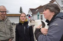 So fuhren wir weiter Richtung Gorzow und wie sollte es anders sein, natürlich hatten wir unterwegs auch prompt einen Katzennotfall. Eine Katze war von zwei Hunden auf einen Baum gejagt worden und kam dort nun nicht mehr runter. Zumal die Hunde unter dem Baum auf sie warteten. Anne fütterte zu allererst die beiden Hunde in ausreichender Entfernung. Das Geschehen passierte direkt an einem kleinen Marktstand. So regten sich zwei Damen mittleren Alters vehement über diese Unart auf, Futter einfach auf den Rasen zu schütten. Warum haben wir eigentlich keine Schüsseln dabei? Nach einer kurzen Erklärung, dass hier überall hungrige Tiere herumlaufen würden und dass das Futter demnach sicher nicht lange liegen bleiben würde, ignorierten wir die ``netten´´ Damen und konzentrierten uns auf die in Not geratene Katze. Mittlerweile stand Susan bei der Katze am Baum, drehte ihr Katze den Rücken zu, so dass die Katze auf ihren Rücken springen konnte. Doch das gelang nicht. Dann hatten Nicole und Mario eine tolle Idee...Trittleiter. Da Nicole durch ihre schlanke Figur für eine Trittleiter deutlich geeigneter war, beförderte Mario Nicole prompt nach oben. Nicole schnappte sich die Katze und unter Geleitschutz von Anne, Susan und Mario brachte man die Katze an einen sicheren Ort und versorgte sie noch einmal mit reichlich Futter. Schnurrend achte sich das zahme Tier über das Feuchtfutter her.