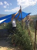 Da die Paletten, wie vereinbart, nicht eingetroffen sind, mussten wir uns mit dem vorhandenen behelfen. Ich bin heilfroh, dass wir die Motorsense in dem Transporter hatten und nicht mit den Paletten geschickt haben. Wir sind dann zu zweit Einkaufen gefahren und die anderen haben im Shelter angefangen einen Platz von Unkraut zu befreien. Beim Einkaufen, vor dem Laden lag ein Hund auf dem Gehweg. Da wir immer Wasser und Futter dabei hatten, haben wir ihn erst mal mit Futter und Wasser versorgt. Dankbar nahm er beides an. Ich setzte mich noch einen kurzen Augenblick zu ihm und er saß auf einmal neben mir, so als wenn wir uns schon ewig kennen. Das war etwas tolles, was ich dort gefühlt habe. Ein völlig fremder Hund, hat so viel Vertrauen, das er sich neben einen setzt und sich kraulen lässt. Es war übrigens der erste Straßenhund, den ich gekrault habe. Es war in diesen Moment, für mich etwas Besonderes. Als wir zum Shelter zurück kamen haben die anderen schon mächtig was geschafft. Es sei hier erwähnt, das die Tagestemperatur auf ca. 36 Grad angestiegen ist. Im Shelter gibt es nur Schatten für die Hunde. Also wir arbeiten den ganzen Tag in der Sonne. Und die ist um die Mittagszeit unerträglich. Das Mineralwasser bekommt, auch im Schatten, eine Trinktemperatur von gefühlten 30 Grad. Sehr gesund und lecker. Würg.