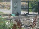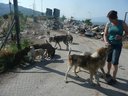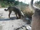 Im Anschluss daran machten wir uns auf den Weg Richtung Müllhalde, hielten aber noch an weiteren Fütterungsstellen an, wo teilweise sehr scheue Streuner auf ihr Futter warteten. Einige Situationen ließen uns kurzzeitig das Blut in den Adern gefrieren, als z.B. einige hungrige Hunde aus den Bergen auf eine große, befahrene Straße gelaufen kamen, als sie Foteinis Auto gehört und erkannt hatten. Wir hatten große Angst, dass die Autos diese erfassen würden und versuchten sie an den Straßenrand zu locken.