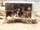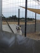 Die Zwinger waren in einem mittelmäßig guten Zustand. Man sah, dass sich Alexandra und ihre Helfer viel Mühe gaben, jedoch hatten sie nur einfache Mittel, gefundene Materialreste etc. und so waren einige Gefahrenquellen, wie herausstehende Drähte, scharfe Kanten und instabilen Zäune und Dächer leider an allen Enden und Ecken zu sehen.