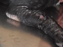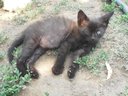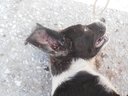Schon als wir auf den Parkplatz fuhren stach uns ein schwarzer Hund ins Auge. Dieser hatte ein unglaublich stark angeschwollenes Gesicht, viele kahle Stellen am Körper, er war sehr dünn und bewegte sich nur langsam fort.