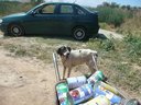 Nachdem wir am Morgen das Auto mit Futter für Alexandra beladen hatten, machten wir uns auf den Weg nach Larissa. Die nette deutsche Auswanderin Conny war so freundlich an diesem Tag zu Alexandras Tierheim zu kommen und für uns zu übersetzen. Alexandra begrüßte uns sehr freundlich und auch ihre beiden Helfer waren wieder dort und halfen uns die mitgebrachten Futterspenden auszuladen. Dann ging es auch gleich mit Alexandra und Conny Richtung Larissa, wo wir bei einem Tierarzt Zeckenmittel für die Hunde und das Tierheim kaufen wollten, für das wir seit meinem Besuch im März Spenden von mehr als 700 Euro gesammelt hatten. Nach einigen Verhandlungen kauften wir dann für 1000 Euro SpotOn-Fläschchen für die ca. 170 Hunde, sowie eine große Menge am Parasitenspray für das Gelände und die Zwinger.