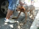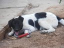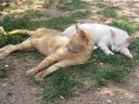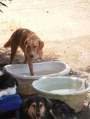 Die Hunde die wir finden konnten wurden von Inga mit Futter und Wasser versorgt. Auch eine junge Hündin mit ihrem Welpen trafen wir an einem Hotel an, wo man sich gelegentlich um diese kümmerte. Am Abend versorgten wir die Schützlinge von Rosa und Inga ausgiebig, schenkten ihn ein paar Streicheleinheiten, bürsteten einige von ihnen und fuhren dann gemeinsam zu Polis und Liesetta ins Dorf. Leider erfuhren wir an diesem Tag von Peter per Telefon, dass einer seiner Welpen, die wir am Vortag bei ihm gesehen hatten, verstorben war.