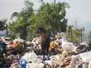 Als wir dann an der Müllhalde angekommen waren, stockte uns allen kurz der Atem. Ein stechender Geruch von vergammelnden Essensresten, Müll und vermutlich auch verwesenden Tieren stieg uns in die Nase und trieb mir geradezu die Tränen in die Augen. Einige Hunde kamen vorsichtig auf uns zu gelaufen, während ein paar aufgeweckte Welpen, die erst vor ein paar Tagen dort ausgesetzt worden waren, um uns herum liefen. Viele Hunde mieden uns gänzlich und andere wirken fast schon apathisch, als sie sich auf das von Foteini bereitgestellte Futter zu bewegten. Es war gar nicht möglich zu erfassen wie viele Hunde dort zugegen waren, aber es müssen sicher um die 50 Stück gewesen sein, die teilweise in den Müllbergen nach Nahrung suchten.