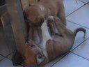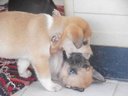 Die beiden Frauen zeigten uns ihre Neuzugänge, die seit meinem letzten Besuch im März 2013 von ihnen aufgenommen wurden, die erst kürzlich geborene Rasselbande unserer einstigen Notfallhündin Anja und das neu gebaute Futterhaus, zur sicheren Lagerung der vielen notwendigen Säcke und Dosen.