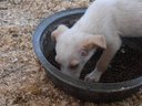 Anschließend gingen wir zu den beiden Welpenzwingern. Die zwei verstorbenen Welpen hatten zuvor mit zwei weiteren Geschwistern und ihrer Mutter zusammen in einem Zwinger gesessen. Nun waren nur noch die Mutter und zwei der Zwerge übriggeblieben. Wir reinigten die beiden Welpenzwinger sehr gründlich, damit alle möglichen Bakterien, Keime und Krankheitserreger dort so gut wie möglich entfernt werden konnten. Anschließend halfen wir Peter bei der Versorgung der Tiere mit Futter und Wasser.