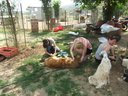 Das Tierheim war in verschiedene sehr große Ausläufe eingeteilt, in denen teilweise bunt gemischte Tierarten miteinander lebten. So teilten sich einige Hunde mit zwei Eseln einen Auslauf, in einem anderen Hundeauslauf stießen wir auf zwei große Hängebauchschweine, ein weiterer Auslauf bestand fast ausschließlich auf verschiedenen Vogelarten wie Truthähnen und Gänsen und ein sehr großer Bereich war für die unzähligen Ziegen eingerichtet, die zusammen mit Hunden und Katzen im Einklang lebten.