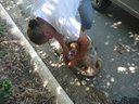 Am Dienstag fuhren wir nach der morgendlichen Versorgung der ,,Glücklichen Pfoten“ zu unserem alten Bekannten Sogambros in die Berge. Auf unserem Weg dorthin begegneten wir dem ersten von einigen folgenden Streunerhunden an einer großen Kreuzung. Wir kümmerten uns um den kleinen Schützling und versorgten ihn mit Wasser, während Inga Futter aus dem Wagen holte und an den Straßenrand stellte. Nach ein paar Streicheleinheiten ging es dann weiter.