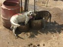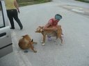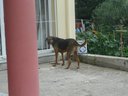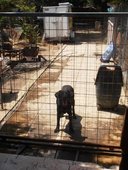 Es war ein weitläufiges Grundstück mit vier großen Ausläufen, in denen mehrere Hunde in kleinen Rudeln gehalten wurden. Ein Hund stach uns jedoch gleich ins Auge. Er erinnerte uns an die Jagdhündin Frieda, die ich bei meiner ersten Reise mit Rosa und Inga von der Straße gerettet hatte. Doch anders als Frieda, die eine sehr ruhige Hündin war und andauernd schlief, war dieser Jagdhund fast krankhaft aktiv. Er rannte ununterbrochen durch das Gelände und suchte die ganze Zeit den Boden mit seiner Nase ab. Auch als wir ihn ansprachen und versuchten uns in seinen Weg zu stellen, rannte er völlig sinnesabwesend an uns vorbei. Ein anderer Hund hatte wohl eine Art Schlaganfall hinter sich und zuckte durchgängig mit dem ganzen Körper.