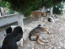 Am Mittag kamen wir in der größten Hitze in Trikala an, wo uns die liebe griechische Jungtierärztin Jenny abholte, die schon viele Jahre ehrenamtlich all ihre freie Zeit und viel privates Geld für Kostas und seine vielen Schützlinge investierte. Jenny brachte uns zum Tierheim von Kostas, der uns sehr herzlich begrüßte. Einige Hunde und Katzen kamen uns schon am Eingang zum Gelände entgegengelaufen, doch die meisten lagen im Schatten und schliefen.