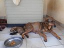 Auf dem Hof angekommen, luden wir zuerst das neue mitgebrachte Futter aus. Einen Teil hatten wir schon an zwei Hunde verfüttert, denen wir bei dem uns nun durch Lido schon bekannten Lidl begegnet waren. Diese sahen jedoch gesund und munter aus, sodass wir sie nur mit Futter und Wasser versorgten. Unser nächster Blick galt Lido, der immer noch etwas verschlafen aber schon besser aussah und uns in Peters Haus begrüßte. Seine Wange war schon deutlich abgeschwollen und Peter berichtet uns, dass er sehr gut gefressen hatte.