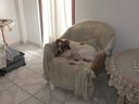 Foteini wirkte auf mich gleich sehr vertrauenswürdig, ehrlich und engagiert. Sie zeigte uns zuerst ihre Wohnung und die dort lebenden Tiere. Darunter die junge Hündin Bubu, welche eine extreme Gehbehinderung hatte und ihre Hinterbeine nicht selbstständig bewegen konnte. Diese Hündin konnte in der Zwischenzeit von Julia in ein tolles Zuhause vermittelt werden.