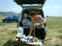 Da wir uns für diesem Tag kein neues Projekt vorgenommen hatten, sondern den Tag mit Inga und Rosa verbringen wollten, machten wir am Vormittag alle zusammen die Hunde fertig, befreiten das Grundstück und die Zwinger von Hundehaufen, frischten das Wasser auf und fuhren dann gemeinsam los. Die Frauen wollten Anja und Julia die Tour zeigen, die sie jedes Jahr im Winter (zwischen September und Mai) fuhren, um Straßenhunde an verschiedenen Stellen zu füttern.