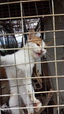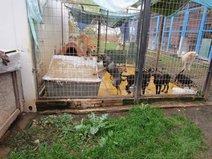 Im hinteren Bereich waren wieder offene Zwinger mit Erdboden, der leider auch hier vom Regen aufgeweicht war. In allen Zwingern im Tierheim stand für jeden darin untergebrachten Hund eine Hütte bereit und einige waren mit zusätzlichen Holzpaletten ausgelegt, damit die Hunde nicht auf dem nassen Boden stehen müssen. Zwischen den Zwingern im hinteren Bereich stand dann noch ein Container mit Außenzwinger, in dem die Katzen untergebracht waren. Darin befanden sich ein Baum, der gespickt war mit mauzenden Katzen und einige Häuschen und andere Utensilien für die Samtpfoten. Im Zentrum des Tierheims stand ein Bauwagen, indem der Arbeiter wohnte der sich täglich um die Versorgung der Tiere kümmert. Daneben zwei aufeinandergestapelte Container, in denen Spenden und Futter gelagert wurden und eine Quarantänestation eingerichtet war.