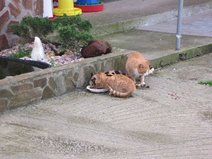 Am kommenden Tag machten wir einen kleinen Ausflug und fuhren dabei mit dem Auto durch die nähere Umgebung. Dabei begegneten uns einige Streuner, die wir alle mit Futter und Wasser versorgten. Sie sahen zu unserer großen Freude teilweise doch recht fit und gut genährt aus. Nur einige wenige machten einen doch recht dünnen Eindruck, was besonders tragisch ist, da der Winter bevorsteht. Manche von ihnen waren extrem anhänglich und forderten immer wieder Streicheleinheiten ein, wieder andere blieben auf sichere Entfernung und machten sich über das Essen her, um anschließend weiter zu ziehen. Es waren kleine Rudel von 2 – 3 Hunden. Dabei begegneten wir auch einem Hund, der auf einem Hof mit Schafen, auf extrem schlammigen Boden stand und uns dabei beobachtete, wie wir vor dem Hof Streuner fütterten. Natürlich brachten wir ihm auch gleich eine große Portion Futter und Wasser. Als auf dem Hof der anliegenden Werkstatt dann zwei Mechaniker an einem Tracktor herum schraubten, fragte Kosta sie, ob dies ihr Hund sei. Der Werkstattchef bestätigte dann, dass der Hund, sowie auch die Hunde vor dem Hof zum ihm gehörten. Und so fand Kosta ziemlich deutlich Worte, um dem Mann mitzuteilen, dass es eine Schande sei, dass da Touristen kommen müssten, um sich um seine Tiere zu kümmern. Er versuchte sich dann heraus zu reden und sagte, er hätte einen Sack altes Brot für die Hunde. Doch das war keine Antwort, die uns wirklich zufrieden stellte. Nach einer kurzen hitzigen Diskussion fuhren wir weiter. Bei einer späteren "Überprüfung" stellten wir fest, dass die Diskussion genau richtig war. Alle Hunde waren nun auf dem Hof, sie waren frei und hatten neben frischen Wässern reichlich Hundefutter in Näpfen.