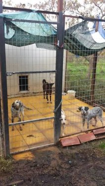 In der Mitte des Tierheims befand sich ein Gebäude (dieses steht wohl schon einige Jahre dort) mit gemauerten und gefliesten Zwingern, die sowohl eine Innen- als auch einen Außenbereich haben. Auch der linke äußere Rand des Tierheims bestand aus festen Zwingern. Auch diese waren gemauert und gefliest, waren aber um einiges neuer als der alte Massivbau in der Mitte. Doch leider hatten die Handwerker bei dem neuen Bau schlechte Arbeit geleistet und so mussten Vasso und ihr Team einige zusätzliche Mittel investieren um z.B. das Dach neu zu legen.