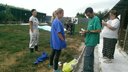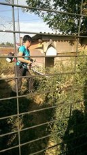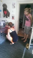 Eine weitere Station unserer Reise war am Mittwoch bei dem privaten Tierschützer Vladi, der im bukarester Umland auf seinem Grundstück etwa dreißig Hunde aufgenommen hat und pflegt. Als wir dort waren, hatte Vladi tatkräftige Unterstützung von Katja aus Hannover und Eveline aus der Schweiz, die ihm schon länger organisatorisch und finanziell eine große Hilfe sind. Wiebke und Vladi sind mit dem Transporter zum Tierarzt gefahren, um eine Hündin mit Tumor untersuchen zu lassen und eine Katze zu besuchen, die der Tierschützer einige Tage zuvor gerettet hatte, nachdem einige Kinder mit ihr Fußball gespielt und sie so schwer verletzt hatten. Neben der Bezahlung der bisherigen Behandlungskosten der Katze haben wir auch die Kastration einer Straßenhündin übernommen, die Wiebke im Warteraum kennengelernt hat. Gleichzeitig haben Lisa, Carolin und Katja die Ärmel hochgekrempelt und die Zwinger mit Hilfe von Elektrosense und Schweren von Disteln und Klettpflanzen befreit und den Hunden so ein beachtliches Mehr an Auslauf geschafft.