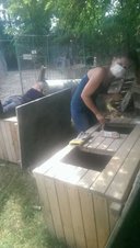 Wir haben uns bei unserer Arbeit darum auf die Krankenstation konzentriert, dort sauber gemacht und dafür gesorgt, dass die kranken Tiere jeden Tag wenigstens ein paar Minuten an der frischen Luft in der Sonne verbringen und die fitteren unter ihnen einige Schritte laufen konnten. Parallel zu unserer Arbeit waren noch vier Helfer aus Deutschland und Österreich vor Ort, ebenso wie Meike von Pro Dog Romania, sodass in der Woche viele Hunde zur Vermittlung fotografiert, Zwinger gereinigt und neue gebaut, sowie Hundehütten winterfest werden konnten.