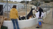 Innerhalb der Häuser, in denen sich eine Quarantäne- und Krankenstation, Pensionsboxen und die Zwinger für die Neuankömmlinge befinden, wird deutlich, in welch großer Not das TH ist- die Häuser sind undicht, es gibt keine Decken für die Körbchen, die Fenster müssen neu gemacht werden und wir sehen mehrere operierte Hunde, die versorgt und behandelt werden müssen. Um an Geld zu kommen und den Spaniern zu verdeutlichen, was mit Hunden gemacht und geholfen werden kann, möchten Angel und seine Frau in Zukunft Kurse für Hundebesitzer geben und dafür geeignete Hunde zu Behinderten-Begleithunden ausbilden, u.a. sollen sie an Diabetes erkrankten Menschen im Alltag helfen, eine lebensbedrohliche Unterzuckerung erkennen und auf diesem Weg eine Aufgabe und ein Zuhause finden, denn nur dann können sie wieder Hunde bei sich aufnehmen. Für die Schulungen gibt es bereits einen Raum und den erwähnten Übungsplatz.