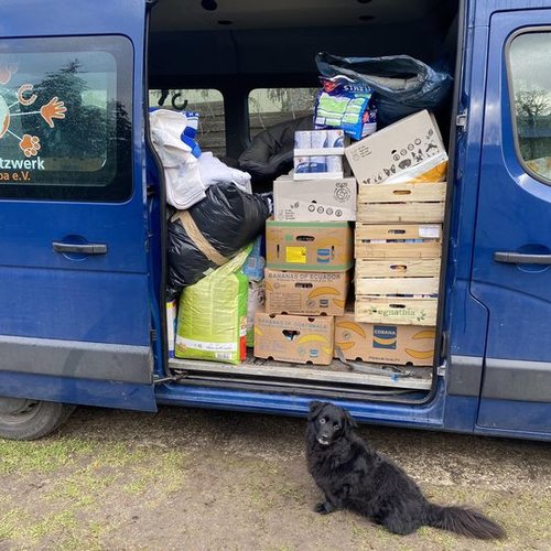 Der Transporter wurde reichlich gefüllt mit Futter und Sachspenden, die gerade nicht dringend benötigte werden.