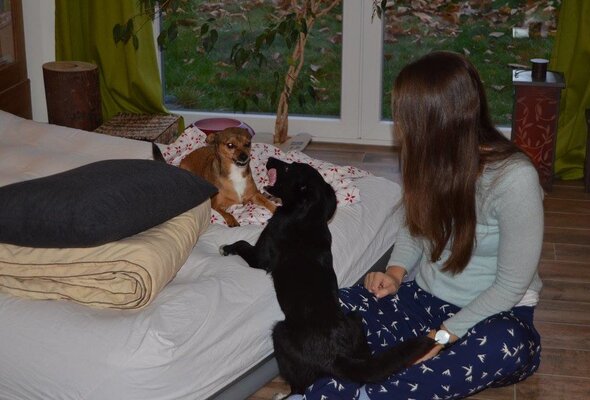 Wir begrüßten alle Vierbeiner gemeinsam und gegen vier Uhr, nachdem der Kuchen angeschnitten und die Getränke verteilt waren, starteten wir mit unserer Sitzung.