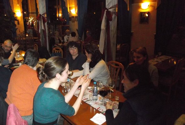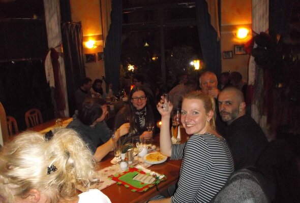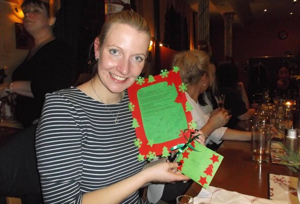 Anschließend ging es gemeinsam zu Griechen, wo wir vegane und vegetarische Leckerbissen genießen konnten. Zudem hatten unsere weltbesten Vereinsmitglieder als Dankeschön für unsere Vorstandsarbeiten für mich und Julia tolle selbstgemachte Weihnachtskalender vorbereitet.