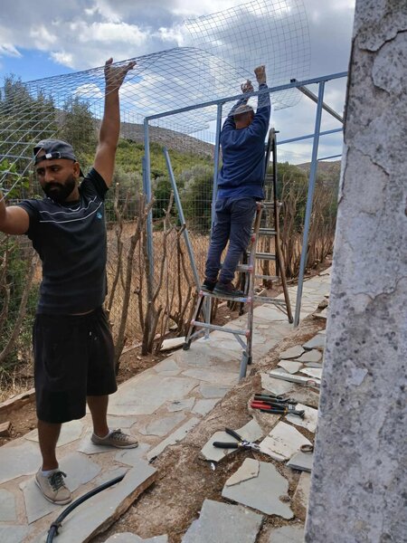 Bereits im Oktober letzten Jahre ließ Alexandra Karpouni für über 1000 € ein Gehege für die Katzen bauen, welche sie schon seit langem in einem kleinen Haus auf dem Grundstück ihres kleinen privaten Tierheims in den Bergen von Keratea beherbergt.