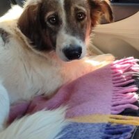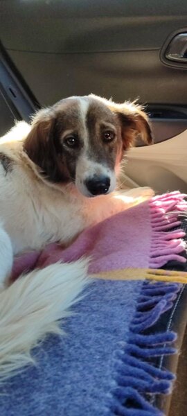 Das ist Oskar. Er lebte auch bei Fatma, dann zwischendurch in einer Tierpension und jetzt bei Beata. Beata wird ihn perspektivisch auf eine Adoption vorbereiten.