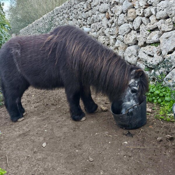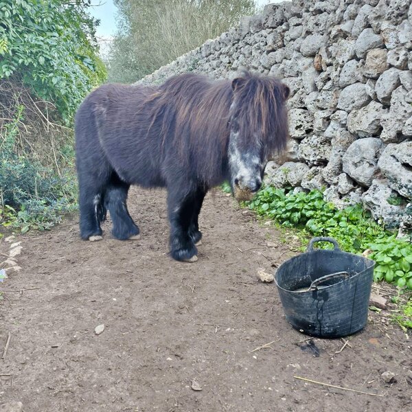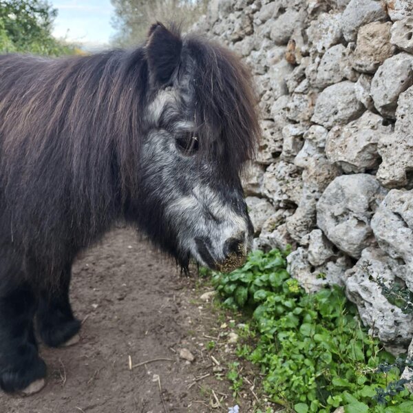 Diese sanfte, alte Seele heißt Little Pony. Little Pony lebte einst direkt gegenüber von Sams Gnadenhof. Sein Besitzer schien das Interesse an dem Kleinen völlig verloren zu haben und ließ sich nicht mehr blicken. So wurde der Zwerg von Tag zu Tag dünner - und natürlich interessierte es niemanden.
