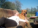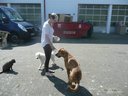 Auf dem Hof angekommen wurde ich herzlich von Ela begrüßt, die einen großen caramelfarbenen  Hund an der Leine führte. Sein Name was Django und er war erst zwei tage zuvor bei Ela eingezogen. Auch die zwei anderen Hofhund Hazel und Frieda tanzen um mich herum, doch ich folgte Elas Bitte und beachtete sie nicht.