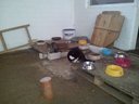 Samstagvormittag begann Ela mit der Fütterung ihrer entzückenden drei Hunde. Ich war sehr fasziniert, wie gut die drei auf sie hörten und wie vorbildlich sie auf ihre Kommandos reagierten. Anschließend begannen wir damit, das Holz vom Vortag auszuladen und das schon gebrauchte Holz von Nägeln und Schrauben zu befreien. Am späten Mittag wurden wir dann von zwei Frauen besucht, die viele tolle Spenden vorbei brachten und sich Hof und Tiere anschauen wollten. Die Hühner und Ziegen freuten sich sehr über die mitgebrachten Möhren und Äpfel und auch die Hunde und Katzen kamen nicht zu kurz.